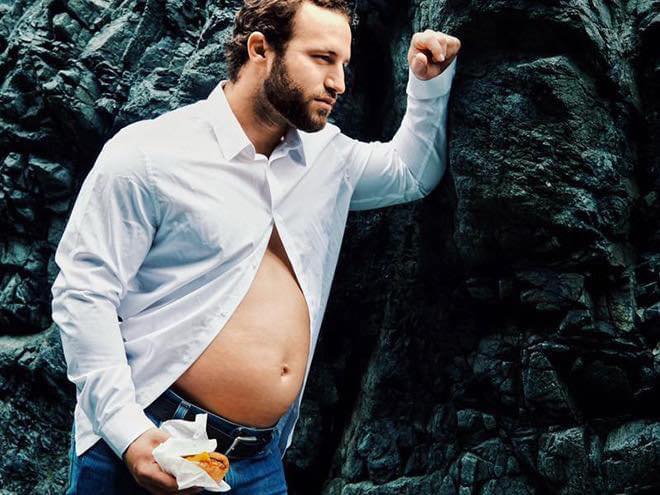5. Samma pappa som imiterar kändisars graviditet, med en utsökt hamburgare i näven!