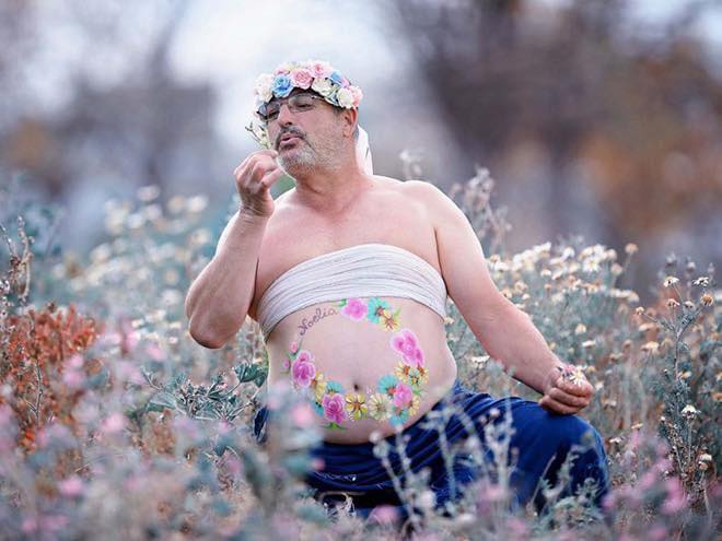 7. Den här pappan har verkligen gått all-in och dekorerat sin ölmage med blommålningar också!