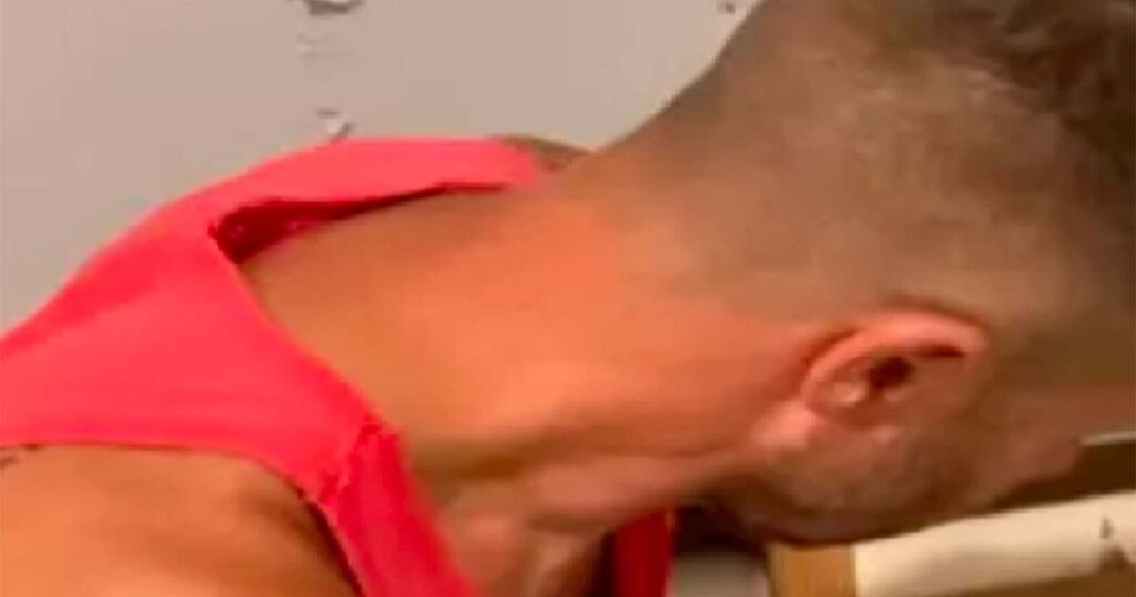 Videon visar Roy dra ut flera flaskor när många fler kommer fallande på golvet.