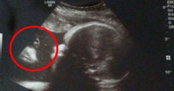 När två blivande trebarns föräldrar var på sjukhuset för en ultraljudsundersökning för att se så allt stod rätt till med deras ofödda dotter fick dom en chock. Dom blev väldigt förvånade och samtidigt glada när dom såg den oväntade gästen dyka upp på ultraljudsskärmen.
