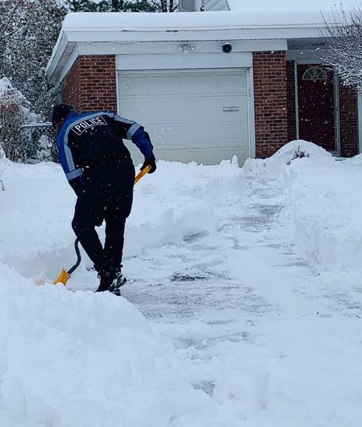 På måndagskvällen fick polisen ett bekymrat telefonsamtal från den 99-åriga damen. Hon bodde ensam i sitt hus och var rädd att det skulle snöa inuti. Hon hade inte hälsan att skotta sin uppfart själv.