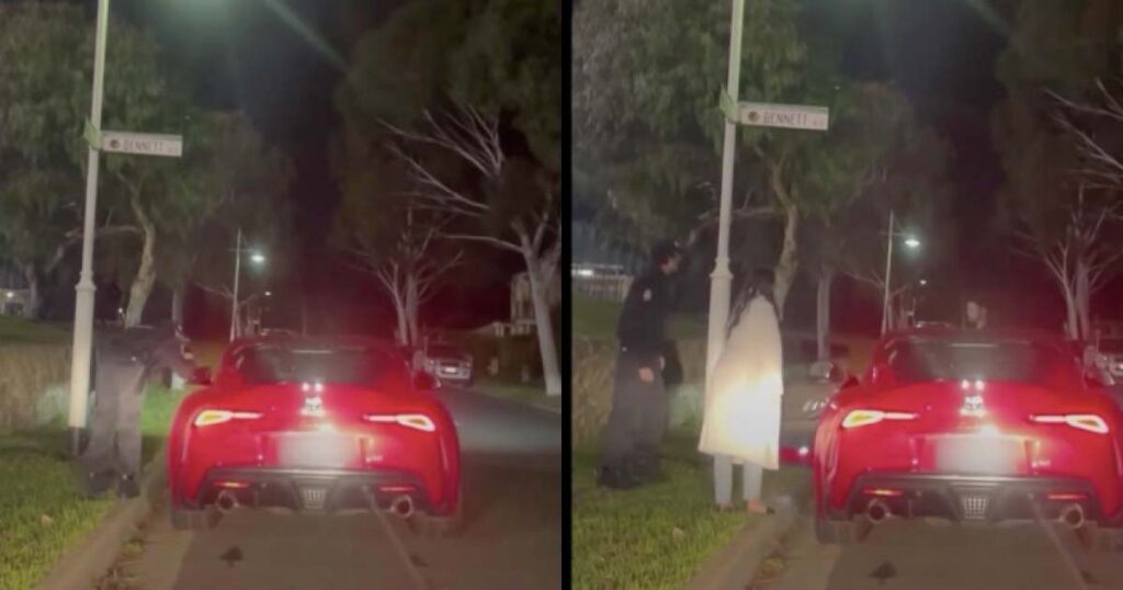 ”Inga problem vännen. Du är inte den gifta kvinnan som gjort en Tinder. Inga problem, vännen”, svarar polisen, varefter bilisten kör iväg.