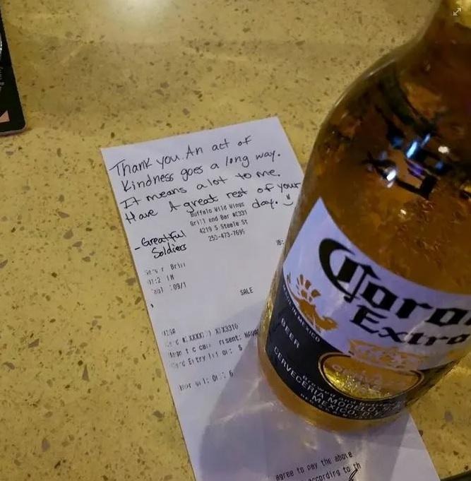 En fallen soldat fick häromdagen en rörande gest från en restaurang i Washington.