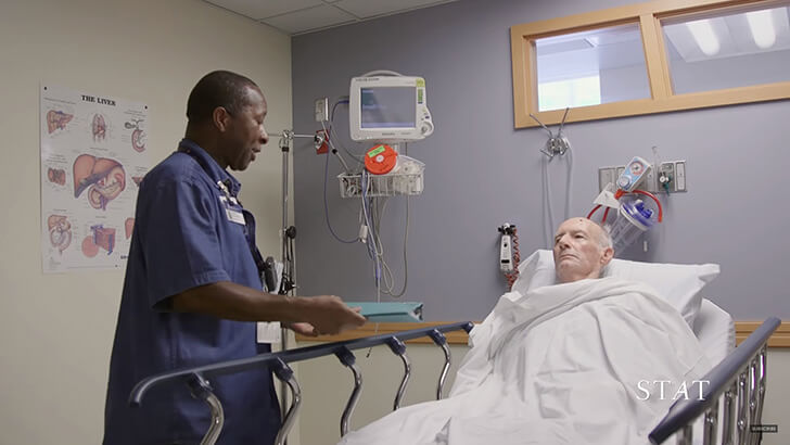 Lyndons insats gör att patienterna känner sig mer avslappnade och oron sjunker.