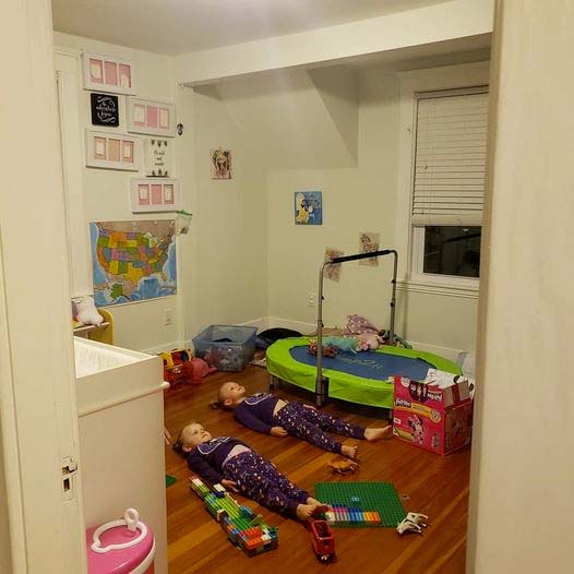 Jessica D’Entremont från Boston har två tjejer på 3 och 4 år. En natt var hon helt utmattad innan barnen gick och la sig. De var helt hyper. Men så kom hon på ett knep som fick dem att ligga helt stilla.