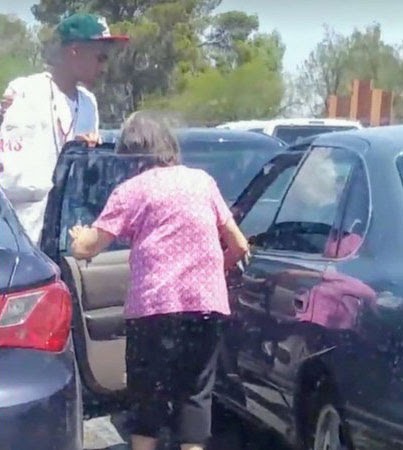 Först var jag inte säker på vad som pågick eftersom jag satt i bilen och kunde inte höra dialogen mellan de två. Nästa sak jag ser är den äldre damen som räckte min son sin matkasse och sedan bad hon honom gå på andra sidan henne. Det var då jag insåg vad som hände. Jag tog fram min telefon för att ta en bild och spela in händelserna så att hans mamma och morföräldrar också kunde se vad jag bevittnade.”
