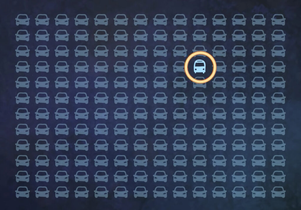 I bilden nedanför ser vi ett gäng bilar uppradade. Men någonstans har en buss smugit sig in. Din uppgift är enkel: hitta bussen så snabbt som möjligt!